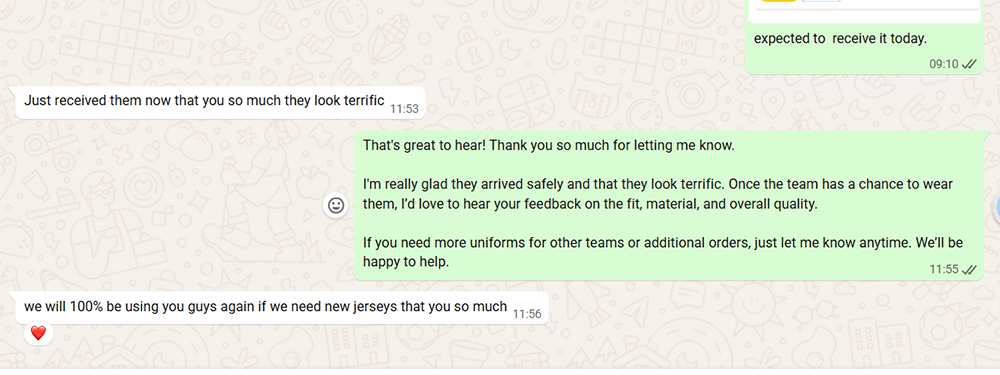 What matters most to us is long-term trust. After receiving the jerseys, the client confirmed: